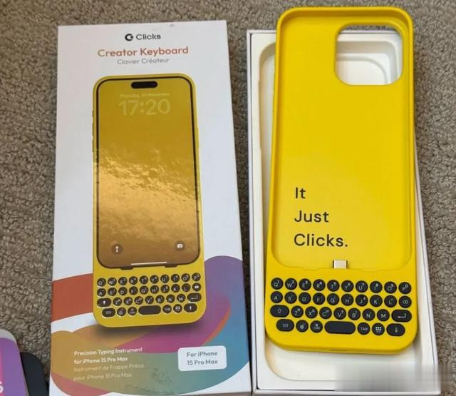 去年一家名为 Clicks 的公司为 iPhone 推出外挂手机键盘,它和手机壳整合在一起,上部分是正常的手机壳,底部则是物理键盘,键盘通过C口连接手机。